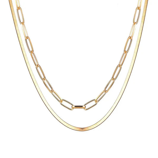 Gold Plated Stainless Steel Anti Tarnish Dual Layered Chain Hoop Pendant Necklace
