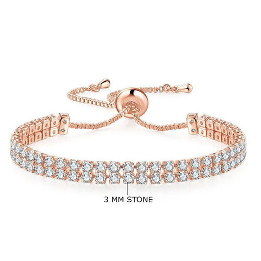 Rose Gold Plated Dual Strand Round Cut Cubic Zirconia White Matrix Tennis Bracelet Rose Gold