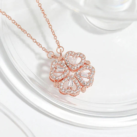 Rose Gold Plated Clover Design AD Openable Magnetic Pendant