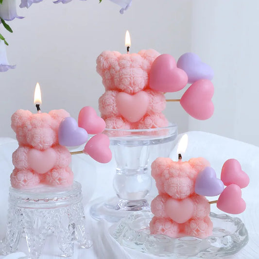 Decorative Soy Wax Candle Heart Rose Bear Aromatherapy Atmosphere Bedroom Fragrance Candle Eco-Friendly Mixed Wax Candles