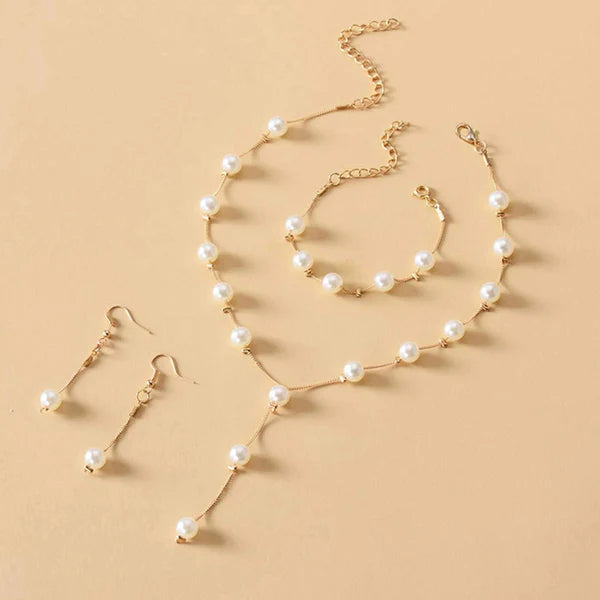 Gold Plated White Pearl Studded Multi-Piece Single-Strand Jewellery Set