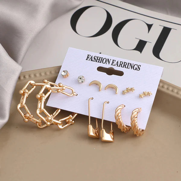 Upgrade your jewelry game with our Gold-Toned Classic Earrings Combo of 6 for Women. With a stunning gold-tone finish, these earrings offer a versatile and timeless addition to any outfit. Made for comfort and style, our earrings are perfect for any occasion. Elevate your look and stand out from the crowd.